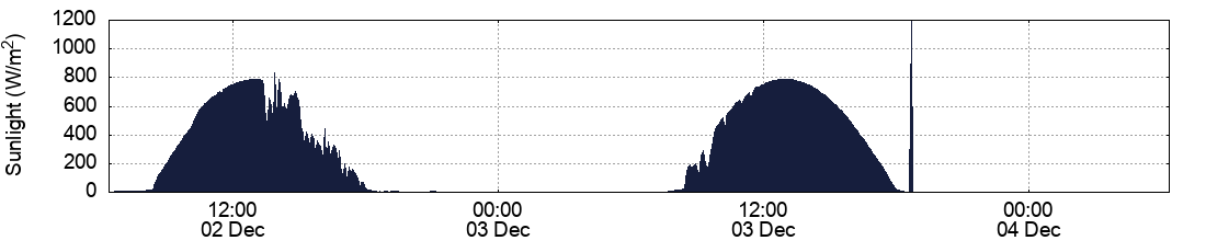 Weather archive data for the Liverpool Telescope for 48 hours from 2 Dec 2021 at 06:25:00 GMT